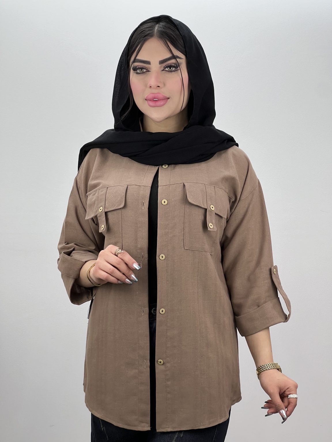 شومیز مانتو لینن جیب صلیبی فری سایز 36_46