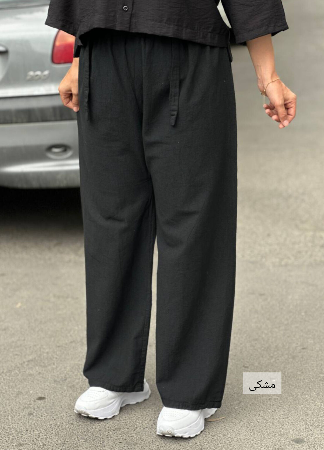 شلوار زنانه لینن مشکی مدل بگ – استایل راحت و شیک روزمرهناموجود