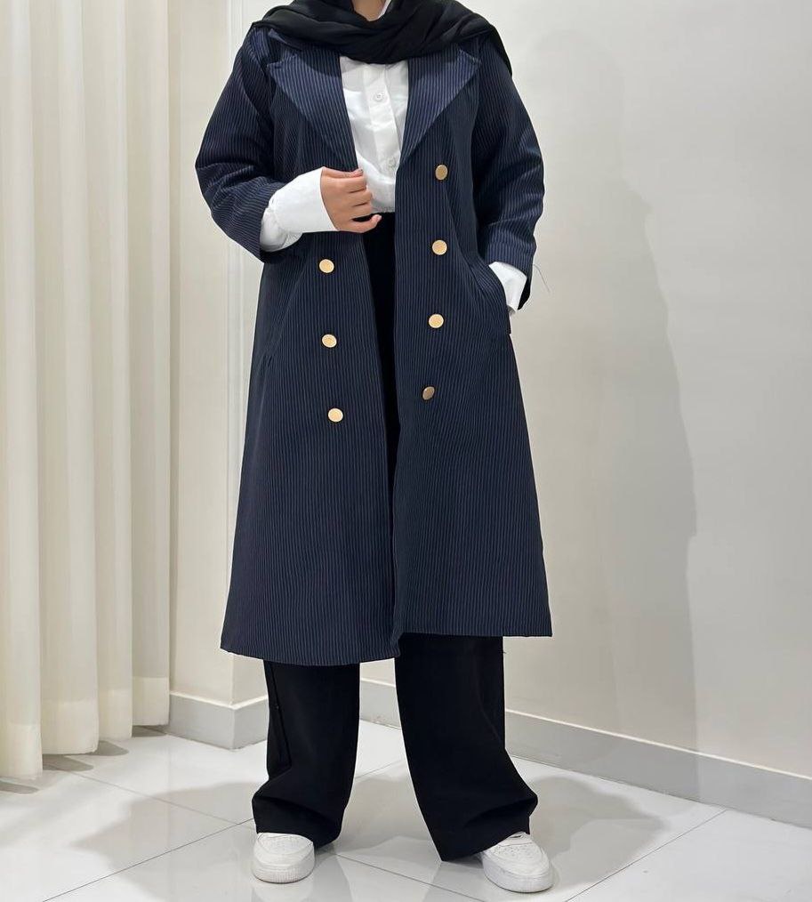 مانتو بلند دیپلماتی دانشجویی جنس نخ مدل خط دار