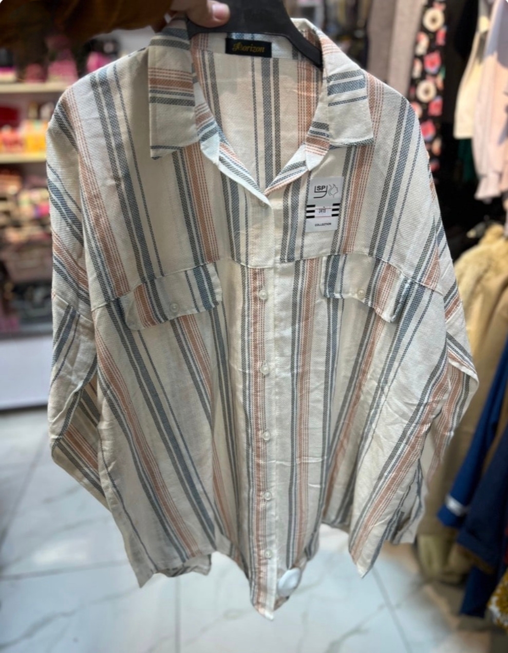 مانتو دخترانه راه راه جنس لینن فری سایز