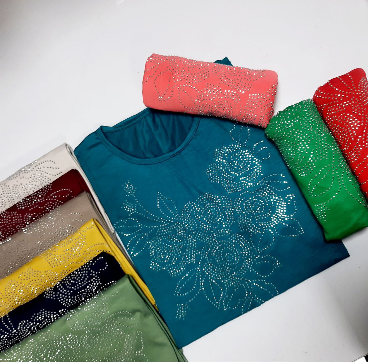 تیشرت قواره بزرگ دخترانه طرح گل جنس ویسکوز لاکرادار فری سایز