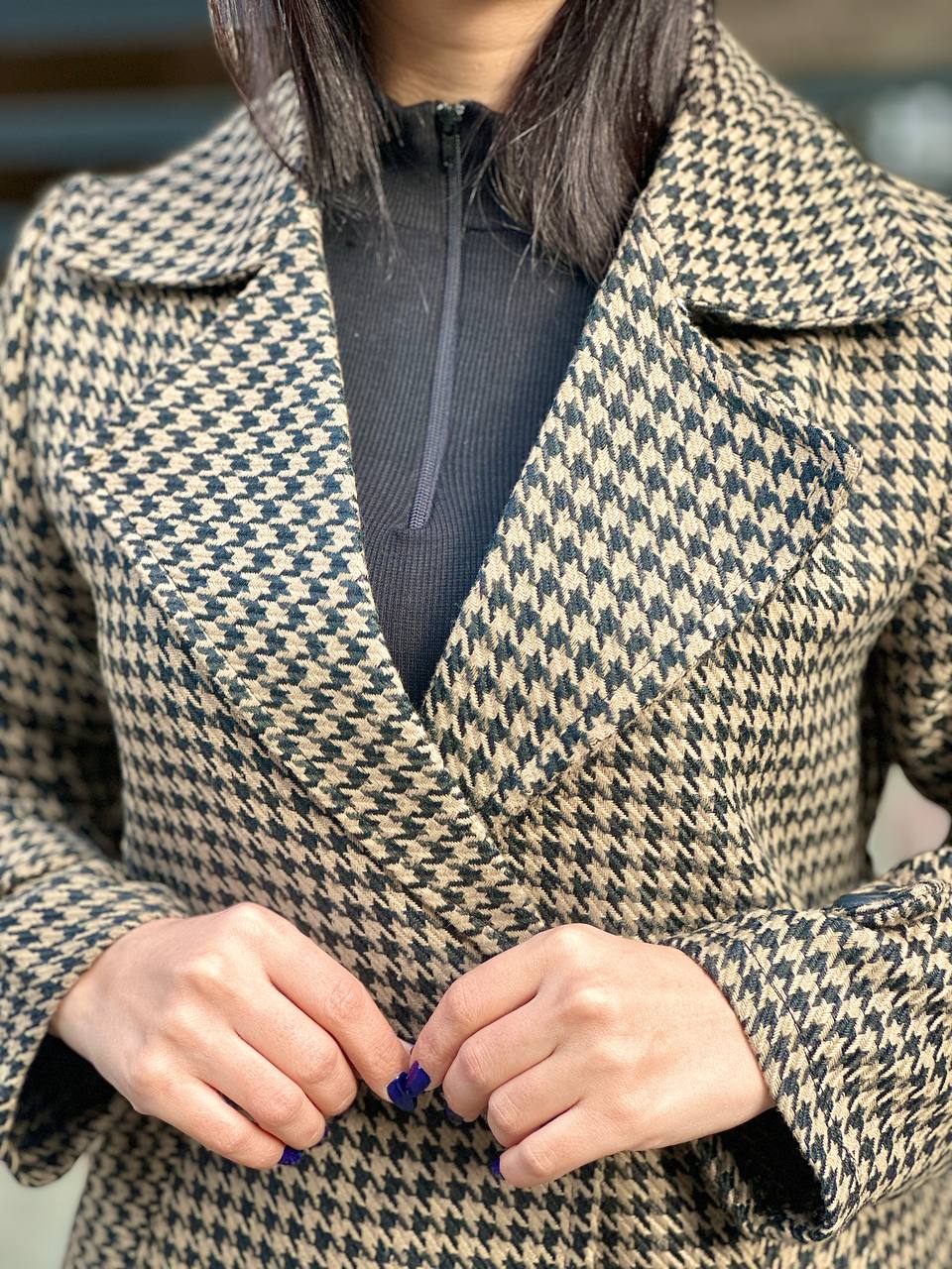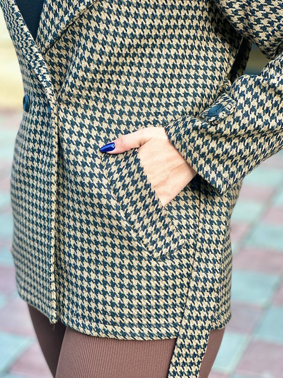 Girls’ Houndstooth Jacket – Warm Wool Fabric, Ideal for Cold Seasons, Available in Multiple Sizes