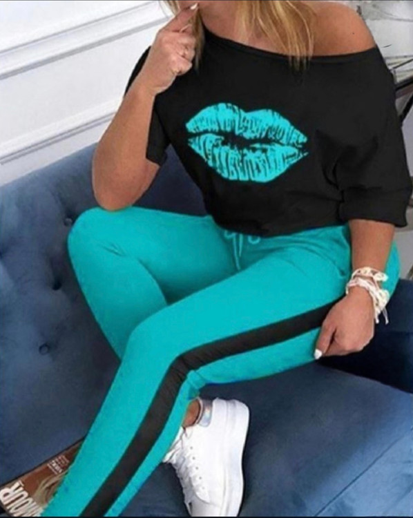 Girls’ Mint Green T-Shirt & Pants Set – Plant-Inspired Filament Fabric, Free Size (EU 34–44)
