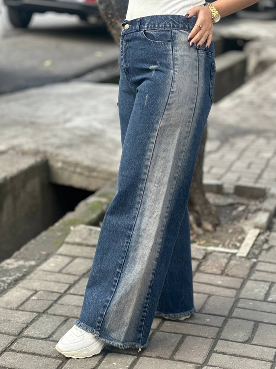 شلوار شافل دخترانه دمپا ریش ریش جنس جین درجه 1 دارای سایزبندی