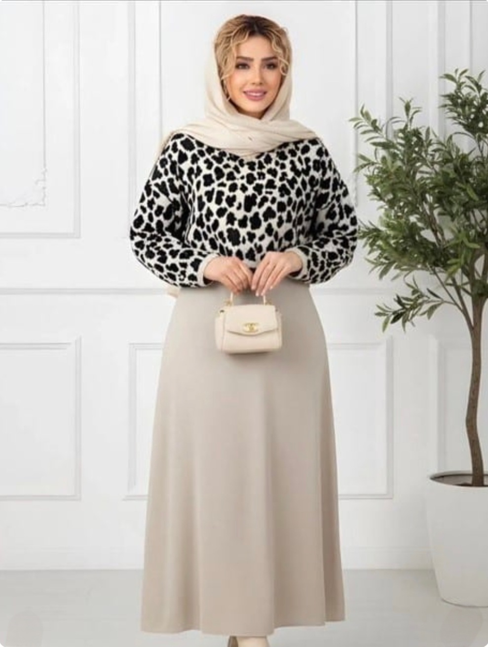 بافت دو تیکه پلنگی جنس بافت فری سایز از 36 تا تمامی سایز ها