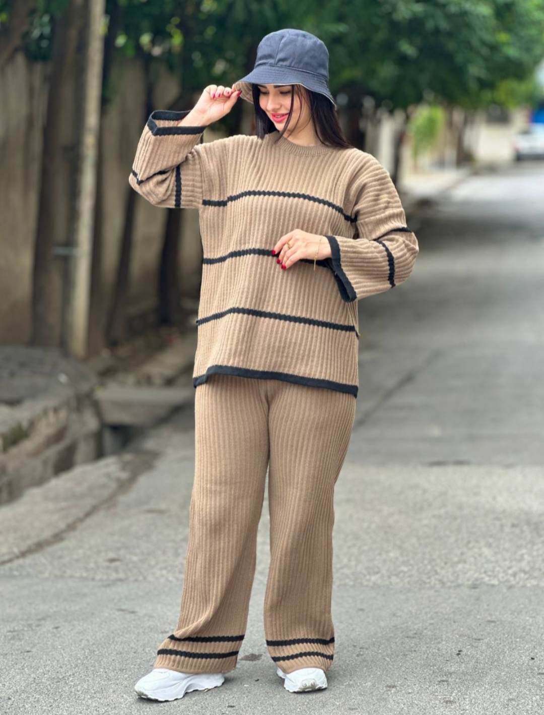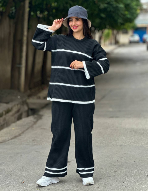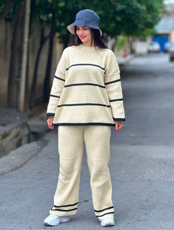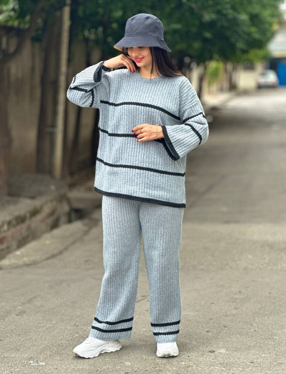 بافت زنانه راهراه آبیسفید با طراحی آزاد و بافت نرم، گزینهای ایدهآل برای استایل روزمره است. ترکیب رنگهای ملایم و فرم آزاد آن، استایلی شاد، راحت و جذاب به شما میبخشد. مناسب برای فصلهای خنک و استایل کژوال.