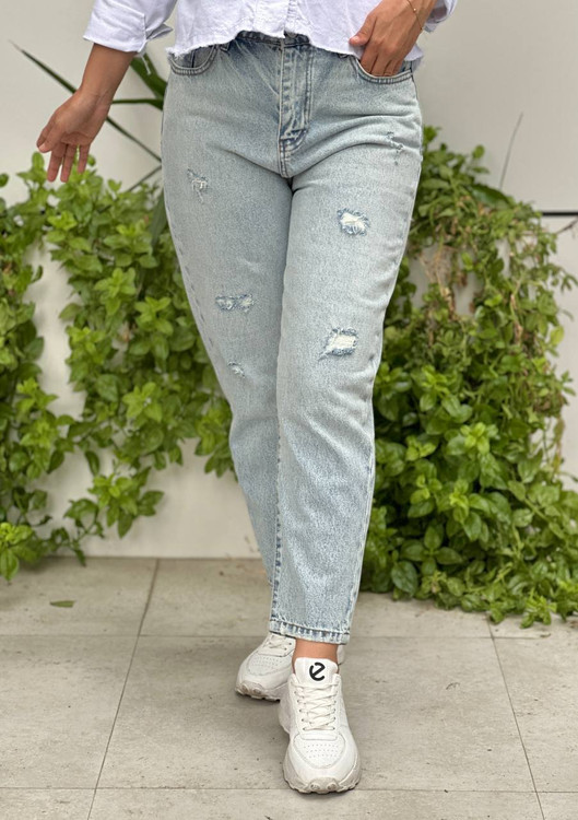 شلوار جین زنانه آبی روشن با زاپهای ظریف، سبک و راحت؛ مناسب استایل روزمره با فیت آزاد و پارچه باکیفیت برای ظاهری مدرن و جذاب.