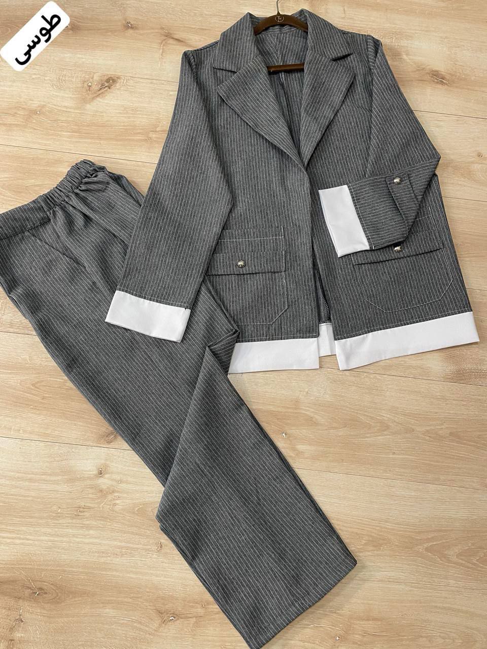 ست کت و شلوارزنانه دیپلمات - رنگ ثابت - فری سایز