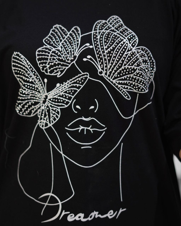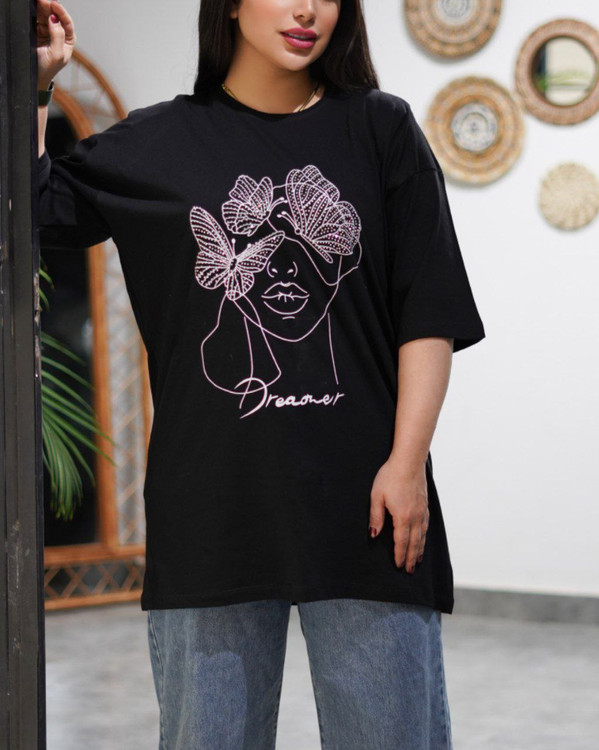 ⚫ تیشرت لانگ طرح پروانه