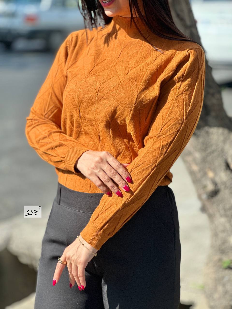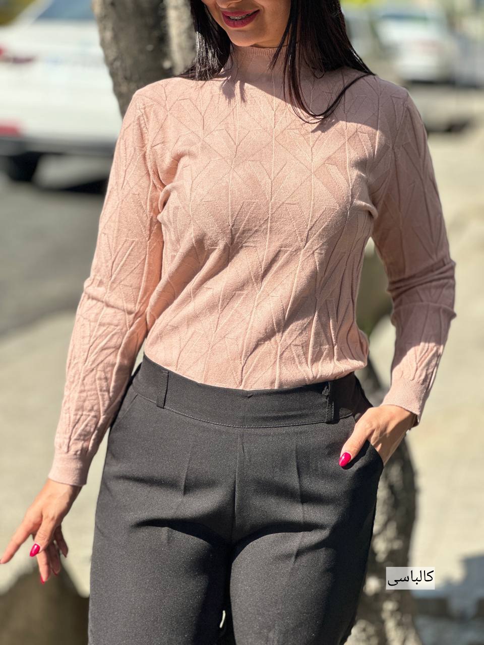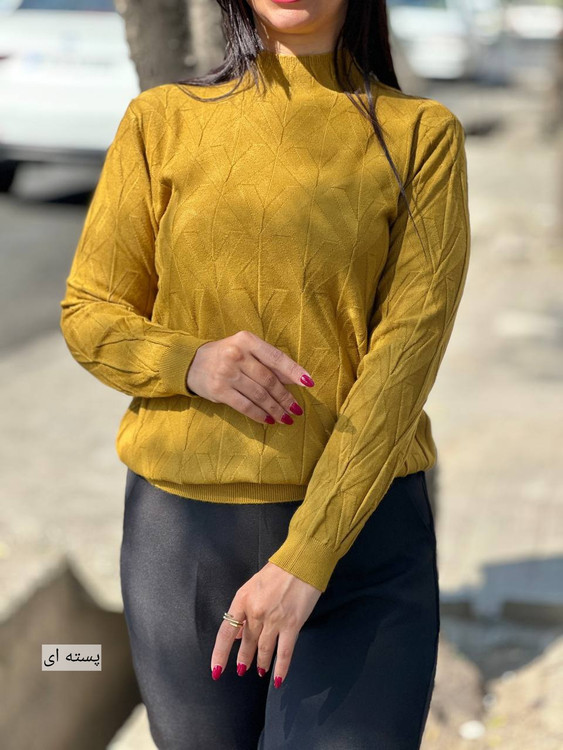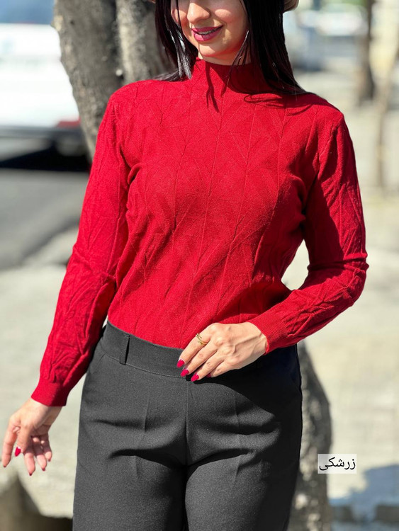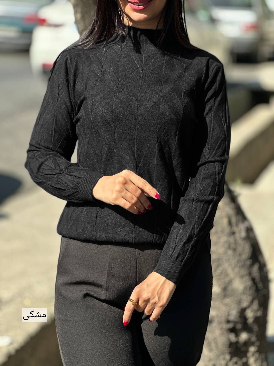 بافت زنانه لوین با یقه ایستاده و طرح لوزی برجسته. لطیف، خوشفرم و مناسب استایل روزمره و مهمانی. انتخاب شیک برای پاییز و زمستان.