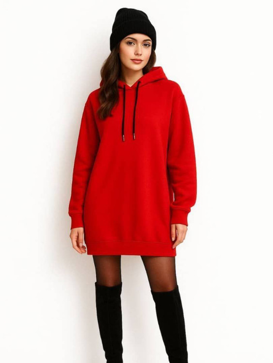Long women’s hoodie with warm fleece lining and thick, high-quality fabric and stitching